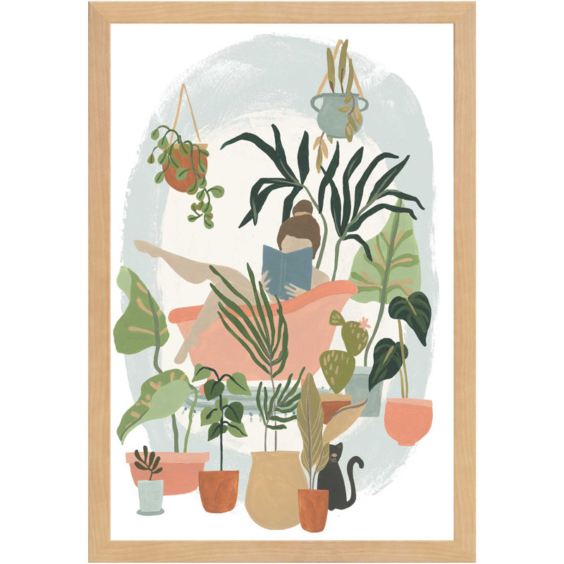 This painting print on wrapped canvas adds a breezy, botanical touch to your space with its earthy color scheme. Printed in the USA, this piece is a recreation of the acrylic painting titled, Plant Lady Bath I by June Erica Vess. It showcases a figure reading a book in the tub surrounded by potted plants. We love how this artwork adds a carefree feel to any room and blends with boho, contemporary, and beachy decor styles. Plus, it comes with a hook on the back for easy hanging in your bedroom, bathroom, or hallway.