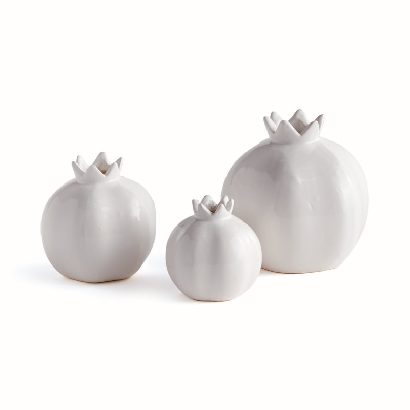 Simple and sweet, this set of three bud vases are pomegranate-inspired. They make the perfect little accent for side table, desk or even tucked away on a bookshelf. Add a couple of faux stems to compl…. Read More.