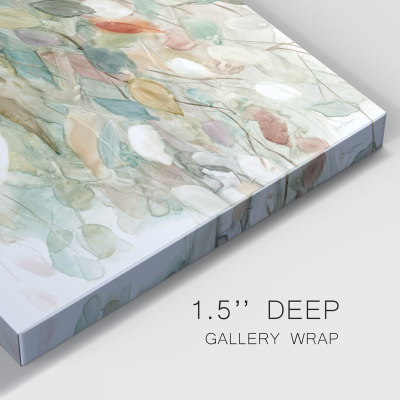 Titled Rainy Cascade, this wrapped canvas print adds instant allure to your space. It’s printed on canvas in a solid wood frame using fade-resistant archival inks with rich primary hues of blue, yellow, and gray. We love the textured look of its design, which features an array of leaf-like shapes in a kaleidoscope of colors. Offered in an array of size options and frame colors, it’s easy to get just the right look almost anywhere.