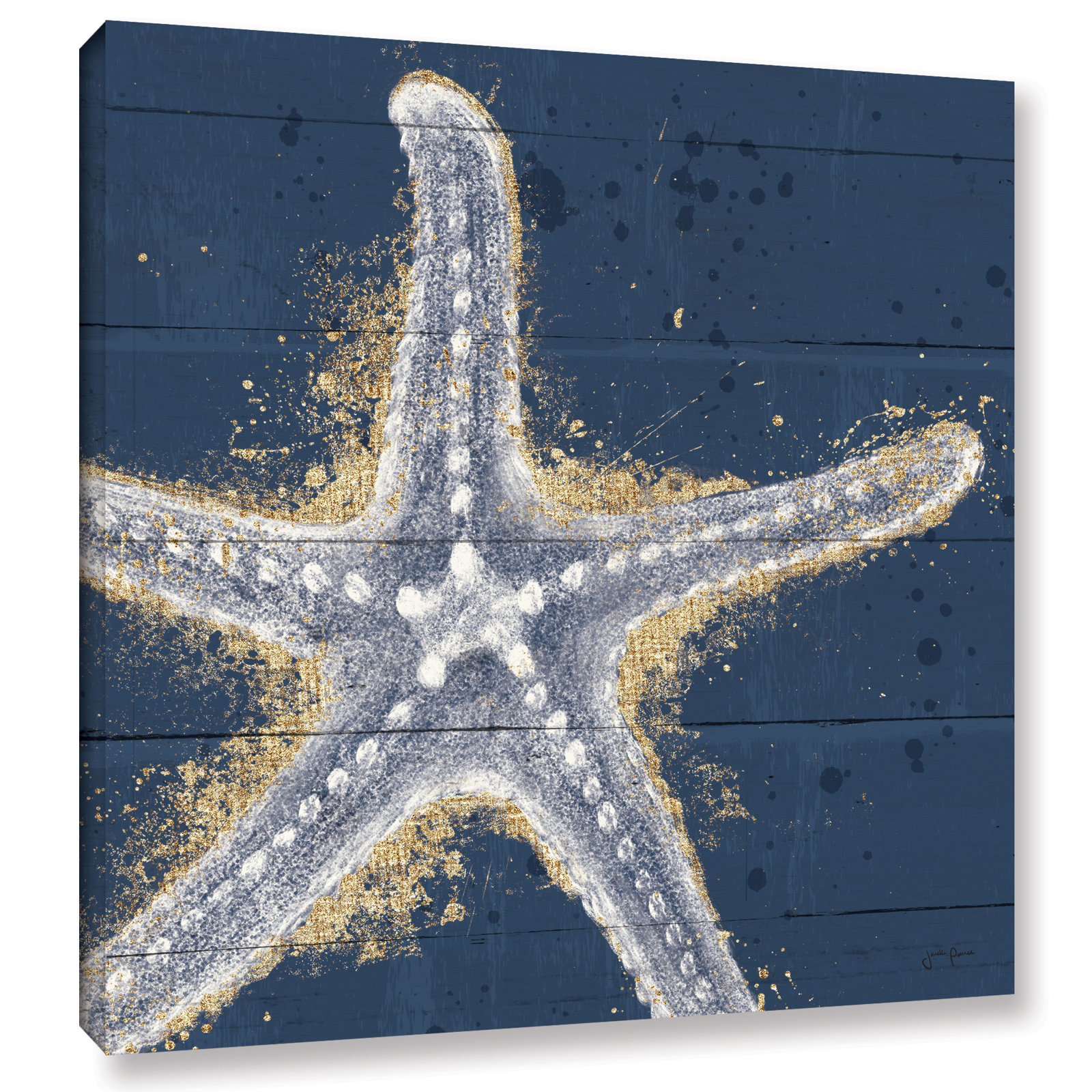This coastal canvas print balances modern art with a tropical feel, making a coastal impact in your living room or bedroom. Showcasing a composition of a single sea star, it features a dusting of gold sand for a metallic touch and a beachy feel. Originally by artist Janelle Penner, this piece is printed on cotton canvas, and it offers a range of framing options for a gallery-worthy look on your accent wall or over your fireplace. It arrives ready to hang with wall-mounting hardware included.