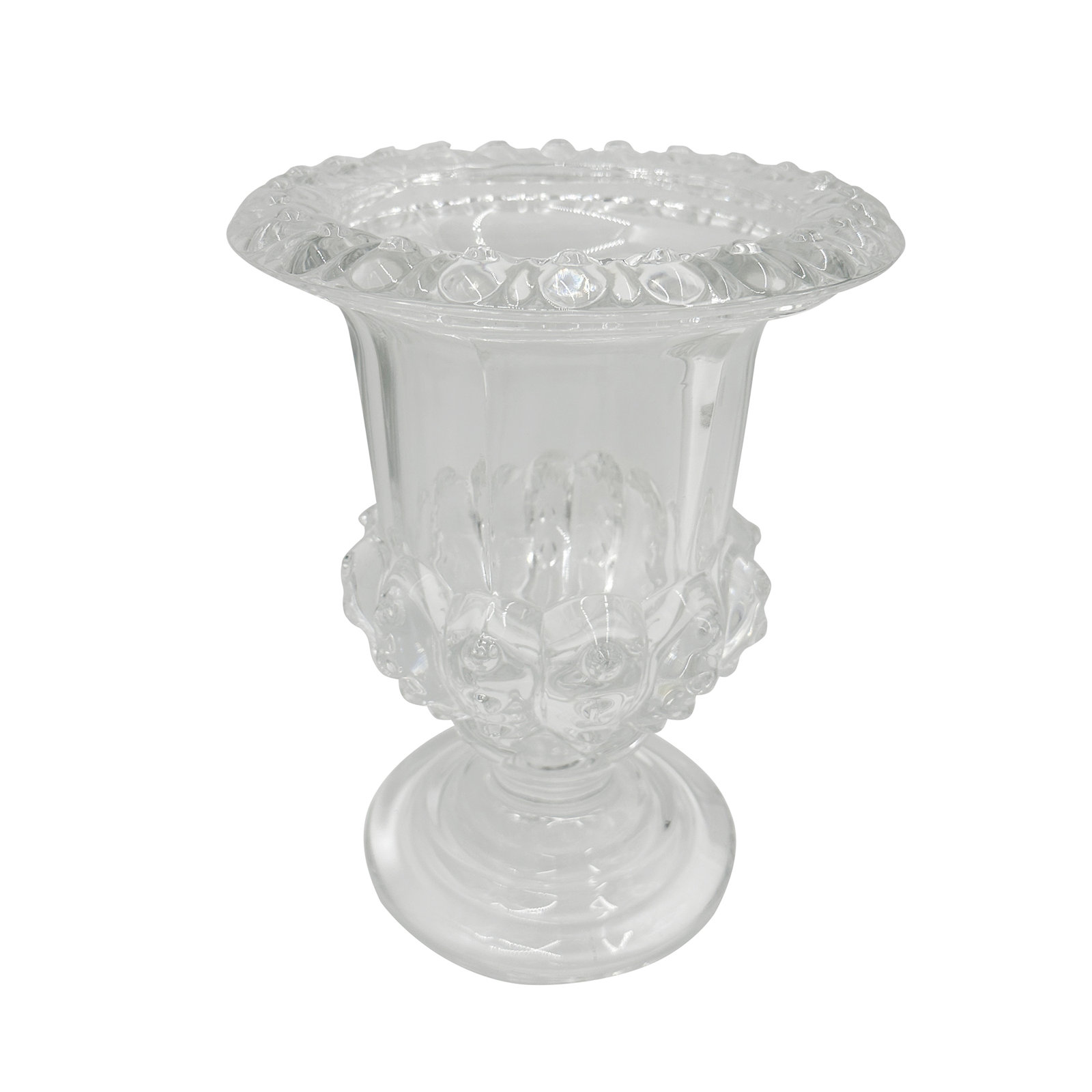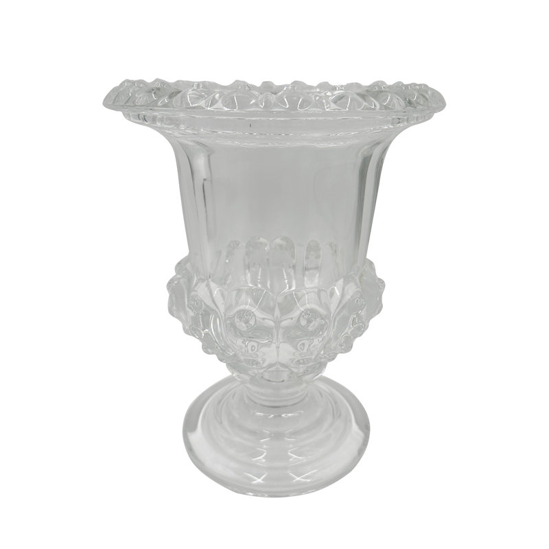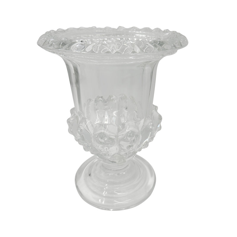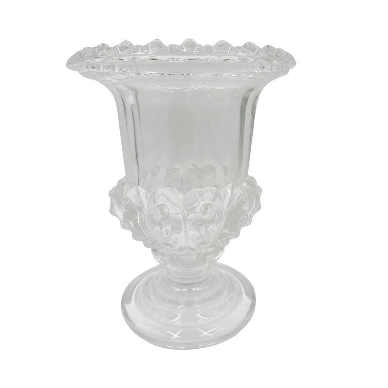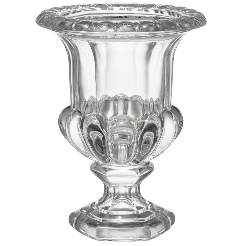- Inspired by antique European glassware, this vase features a classical urn silhouette with a sturdy pedestal base, a bold flared rim, and a crystal-clear finish