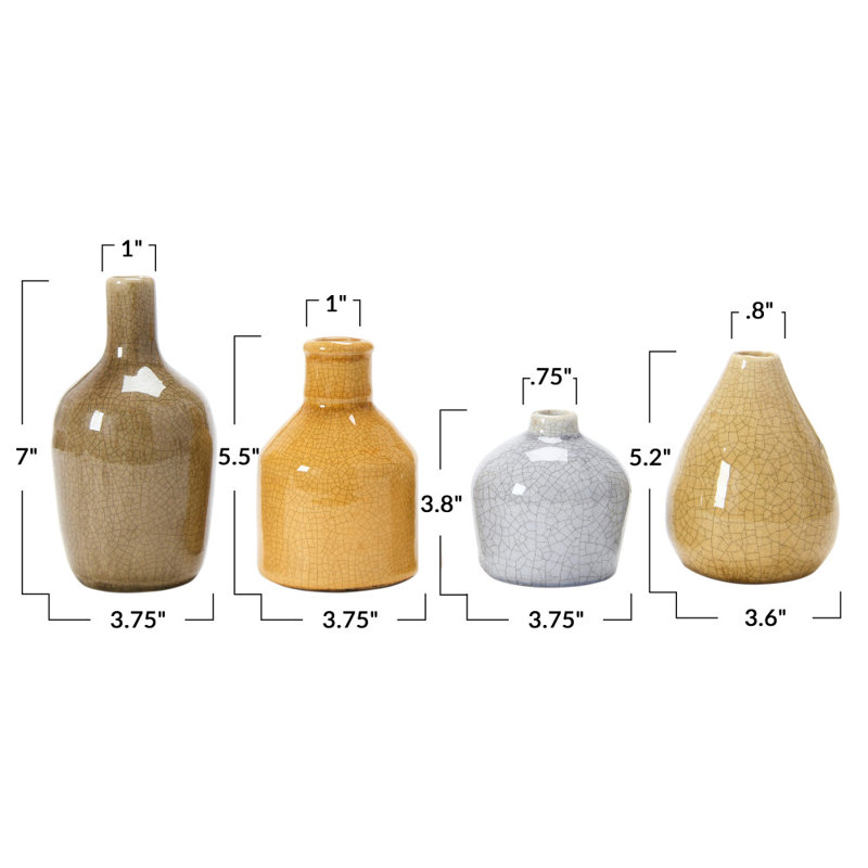 - A set of 4 stoneware vases with a distressed crackle finish and blue and ivory hues