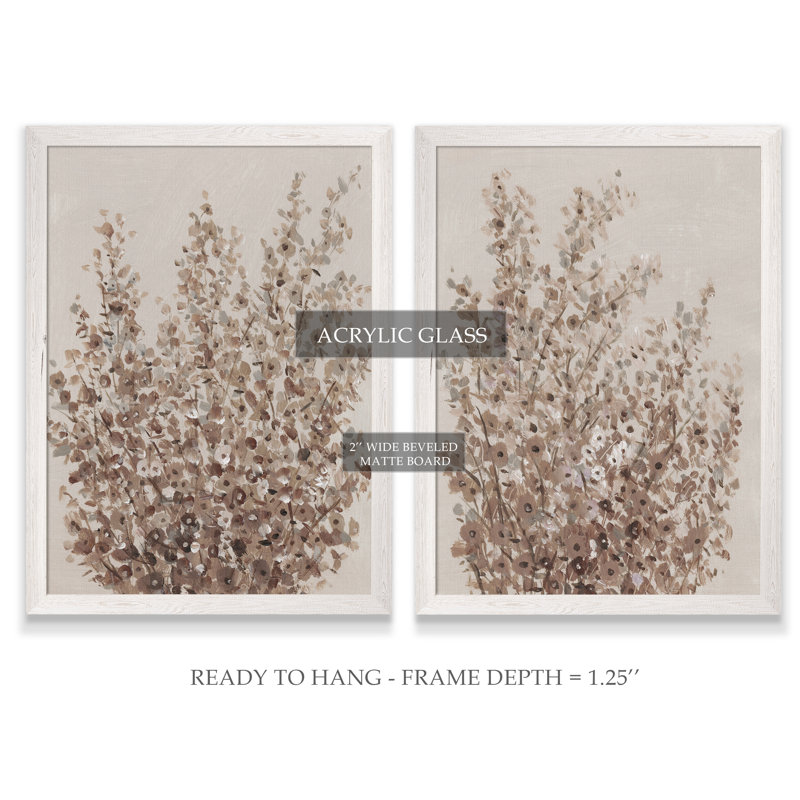 This 2-piece set of painting prints is a re-creation of Van Gogh’s famous flower paintings. Each one features a bunch of wildflowers in muted light mauve tones with hints of gray that blend in nicely with a variety of color palettes and styles ranging from neo-cottage and French country. This artwork is printed using high-quality inks and rests within a picture frame made from distressed wood for a rustic touch. A wall hook is affixed to the back of each for quick, easy hanging upon arrival. Hand-curated by Kelly Clarkson.