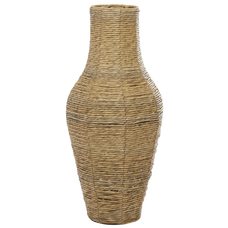 - A textural faux seagrass rope look is woven over an iron frame and base, making it a stunning brown decorative vase