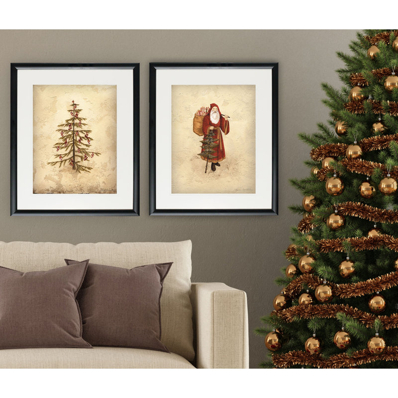 Santa and Tree’ 2 Piece Framed Acrylic Painting Print Set