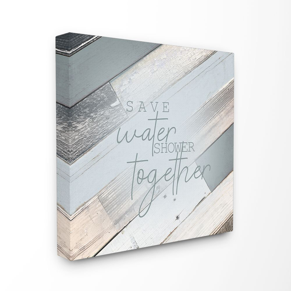 Save Water Shower Together Slate Blue Planked Wood Look by Kimberly Allen – Textual Art Print