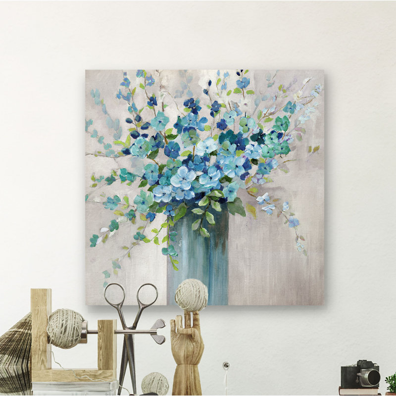 This sea-ish wildflowers wall art print brings a touch of nature’s beauty into your home. The square canvas features a captivating oil painting technique that showcases vibrant wildflowers in a turquoise palette. Crafted using premium giclee canvas and solid wood, the piece is printed with premium inks to ensure a lasting display of color and detail. Ideal for hanging in your living room, bedroom, or office, this wall art adds a touch of tranquility to any space. Mounting hardware is included for easy hanging right out of the box.