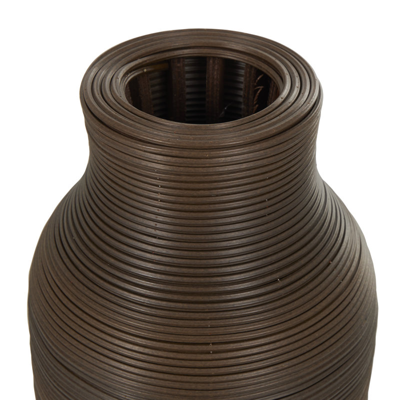 - Bullet Pattern/Shape: The narrow cylinder body of the textured dark brown vase for decoration is wrapped in twisted seagrass detail, creating a two-toned color block