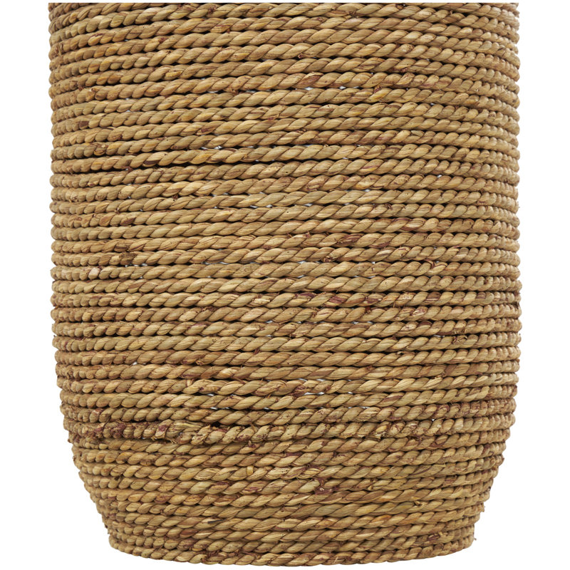 - Dried water hyacinth and seagrass twined ropes wrap this decorative tall vase, with the darker section smoothed to a glossy finish