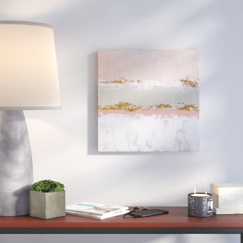 This wall art brings a calming feel to your space with a modern aesthetic that elevates the vibe. It’s printed with premium inks on artist-grade materials for a gallery-worthy look. The square design features an abstract landscape done in hues of pink, gray, and white with gold accents. We love that this wall art comes with mounting hardware, so it’s ready to hang right out of the box. Arrange it over your sideboard, sofa, or headboard for a chic update.