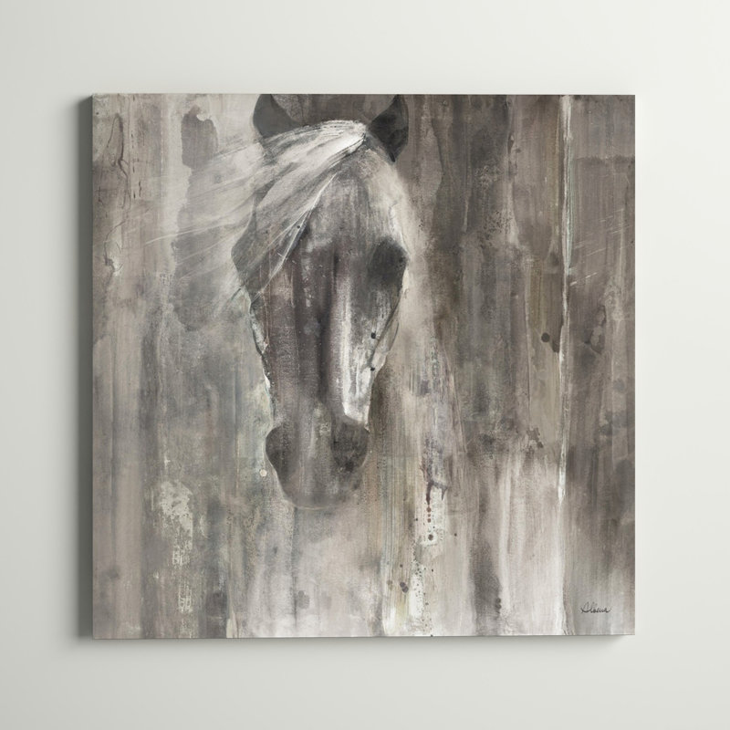 This painting print brings rustic, equine energy for a natural look to your home. It showcases the face of a gallant white horse against a gray and white background with lots of fading, adding plenty of personalities and classic style to your living room, guest room, or entryway walls. Entitled “Shadow Light” by artist Albena Hristova, this piece is printed in the USA on paper and it comes in your choice of framing options. Plus, it arrives with wall mounting hardware, so it’s ready to hang right out of the box.