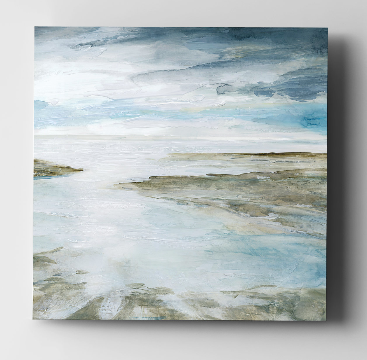 Depicting the shore at low tide, this piece of wall art is sure to add a cool coastal style to your walls. It showcases receding water that reveals brown and gray land that complements the blue hues in the sky and sea. This piece of wall art is printed on your choice of materials in a variety of sizes, so you can find the one that works best for your space. Plus, it arrives with wall mounting hardware so you can decorate your home right when it arrives.