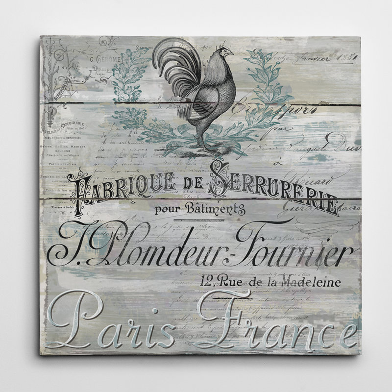 An accent that instantly sets the tone for a Provencal cottage-inspired abode, this eye-catching canvas print is charming as can be. Showcasing a slatted and distressed wood backdrop, it offers sophisticated scrolling typographic details and a rooster dotting the top. Though its design may seem distinctive, it works wonderfully with ensembles of all types thanks to a muted gray color palette. Made in the USA, this piece is giclee-printed on canvas and wrapped around a clean-lined wood frame for a look of gallery-worthy grace. Try setting it over your sofa to liven up the living room, or add it to the entryway to grab glances from guests as you greet them.