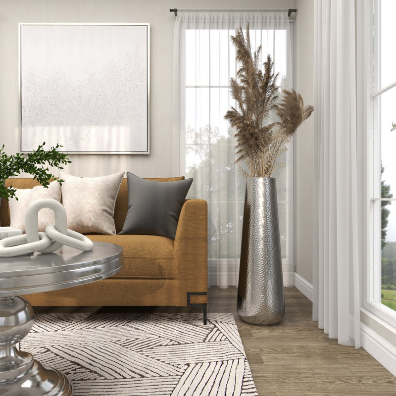 Accessorize your space effortlessly by displaying a beautiful floral arrangement or greenery with this decorative vase. Create a balanced surface space and added dimension with this beautifully crafted vase. Use this silver centerpiece vase in your living room and place it on a polished wood surface with or without dried flowers as an accent piece. Designed with felt or rubber stoppers at the base that prevent scratching furniture and table tops, as well as sliding around. Suitable for indoor use only. Made in India. This is a single silver colored vase. Modern style. Vase has a 6.50 in mouth opening.