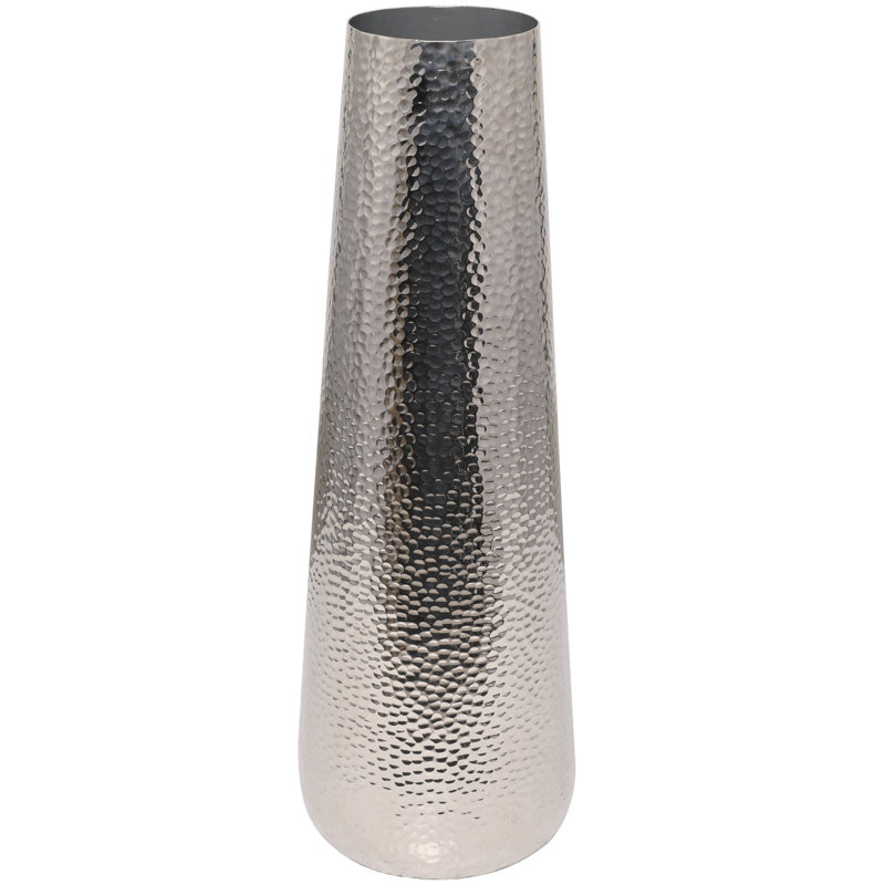 Silver Cedrial Aluminum Metal Tall Hammered Decorative Vase