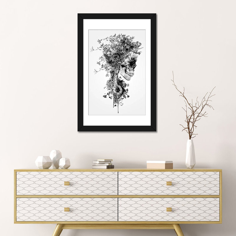 Brimming with distinctive style, this hand-stretched gallery-wrapped canvas print ups the ante of your decor ensemble. Crafted in the United States, this eye-catching print showcases a skull outfitted with floral details for a visually intriguing motif. Hues of black, white, and gray round out this print’s color palette, while a clean-lined rectangle silhouette gives this piece its shape. Whether you’re rounding out a gallery wall ensemble or dressing up the den for the first time, this statement-making print is a must-have addition to your abode.