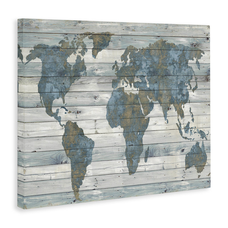 Slate Planked Look Weathered World Map |
