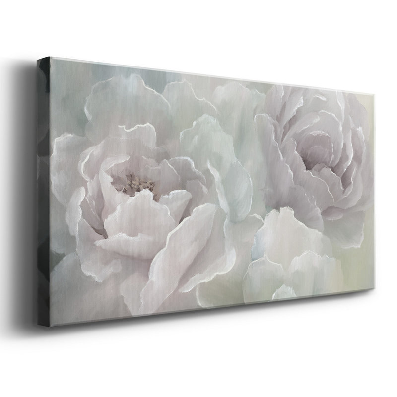 This painting print brings a soft, inviting feel and a down-home vibe to any room in your home. A close-up of multiple peonies comes in muted white and gray tones that work with various styles and color palettes. This understated painting is printed on a rectangular canvas and wrapped around a wooden frame to create an art gallery look we love. Plus, a wall hook is included to provide hassle-free hanging right when it arrives out of the box.