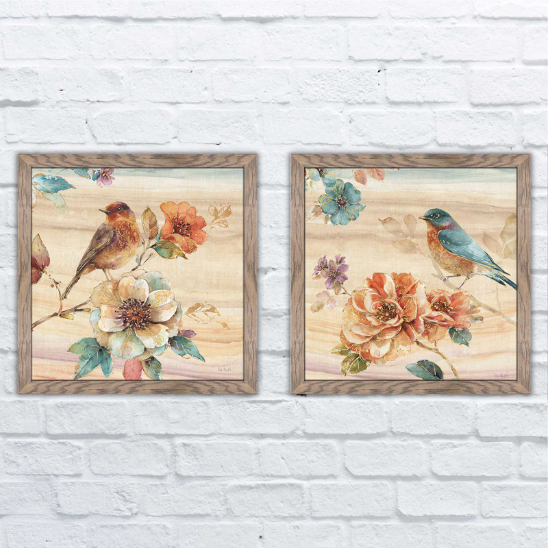 Lend a splash of natural beauty to your walls with this two-piece framed painting print set, showcasing gorgeous hummingbirds perched on blooming floral branches in watercolor hues. Reproduced from th…. Read More.