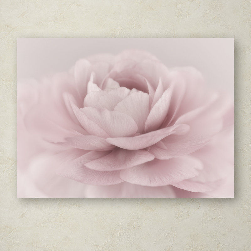This ready-to-hang, gallery-wrapped art piece features a soft pink rose fading into a pale background. Giclee (jee-clay) is an advanced printmaking process for creating high-quality fine art reproductions. The attainable excellence that Giclee printmaking affords makes the reproduction virtually indistinguishable from the original piece. The result is the wide acceptance of Giclee by galleries, museums, and private collectors.