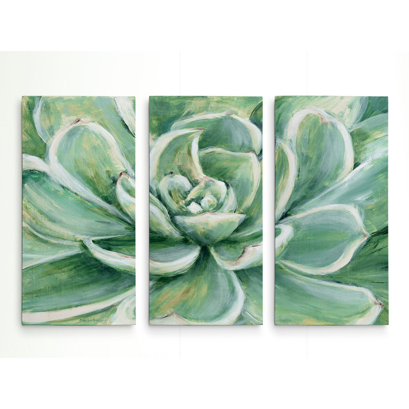 This distinctive 3-piece wall art brings an element of botanical style to your living room, bedroom, or home office. This set features three sections of a close-up image of a succulent, rendered in shades of green, yellow, and white. We love that this trio can be hung together or separately; the included wall mounting hardware makes them easy to display over your sofa, bed, or desk.