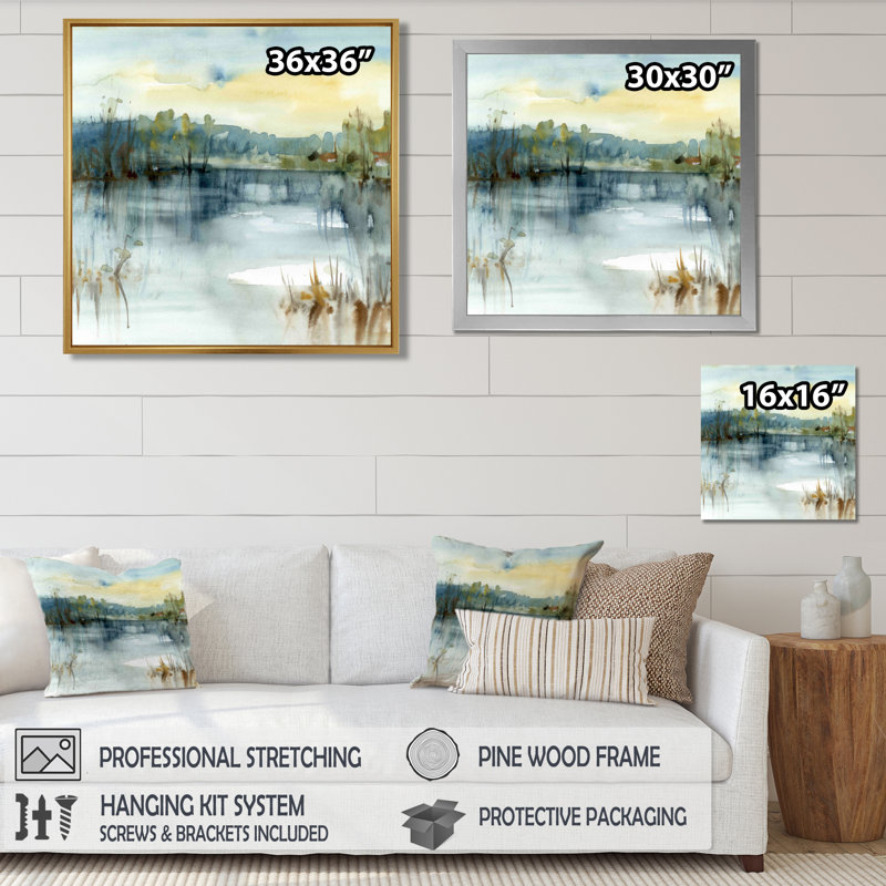 This beautiful ‘summer lake landscape illustration’ is printed using the highest quality fade-resistant ink on canvas. Every one of our fine art giclee canvas prints is printed on premium quality cotton canvas, using the finest quality inks which will not fade over time. Each giclee print is stretched tightly ensuring the canvas is stretched and does not buckle. The canvas print is inserted into a wooden frame for the floating frame. Every canvas print arrives ready to hang on the wall, with the hanging kits included.