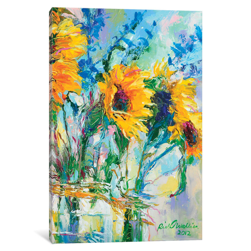 Empty entryway wall? Some spare space in the master suite? A boring bathroom? Wall art instantly turns any blank area into an eye-catching display, all while lending gallery-worthy appeal to your abode. Just take a look at this piece for example: showcasing sunflowers blowing in the breeze, it offers vibrant hues of blue, green, and yellow. Made in the USA, it is printed on canvas and wrapped around a pine wood frame.