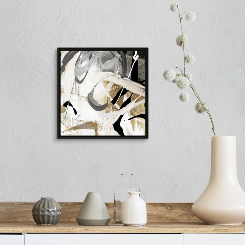 This giclee print features swirling brushstrokes and eye-catching neutral tones to bring a sleek, modern feel to your space. Titled “Tangled I,” striking white, black, brown, and gray hues are flung every which way to create an abstract look that stands out in almost any room. This painting is printed on a square canvas with a variety of sizes available, so it’s easy to find the right one for your walls. Plus, mounting hardware is included for hassle-free hanging right out of the box.