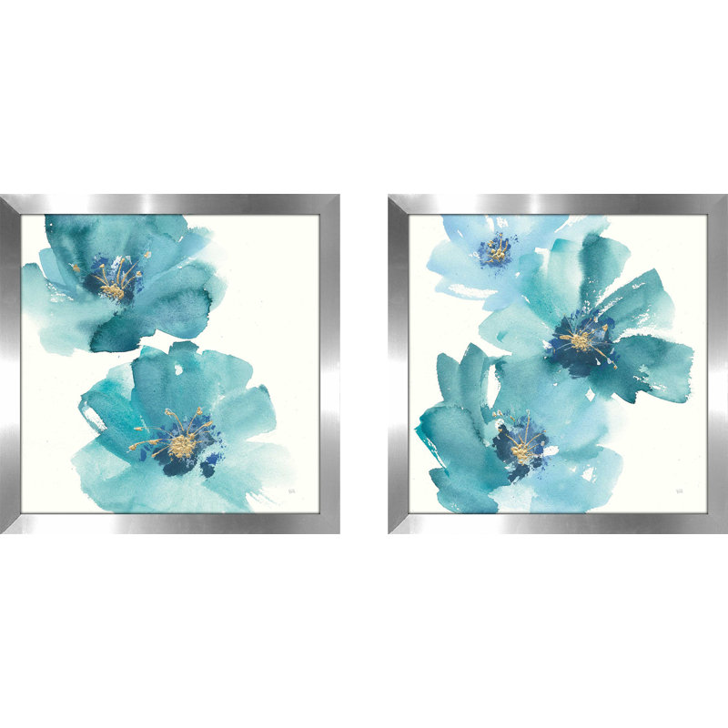 No green thumb? No problem! Get that garden-worthy grace in your space without ever having to water with this two-piece painting print set. Showcasing two matching, yet distinctive, flower scenes, they offer splashes of blue and gold against a white background. Made in North America, these pieces are printed on paper and highlighted by square polystyrene frames finished in silver for a look that rivals any gallery, whether set side by side or split up.