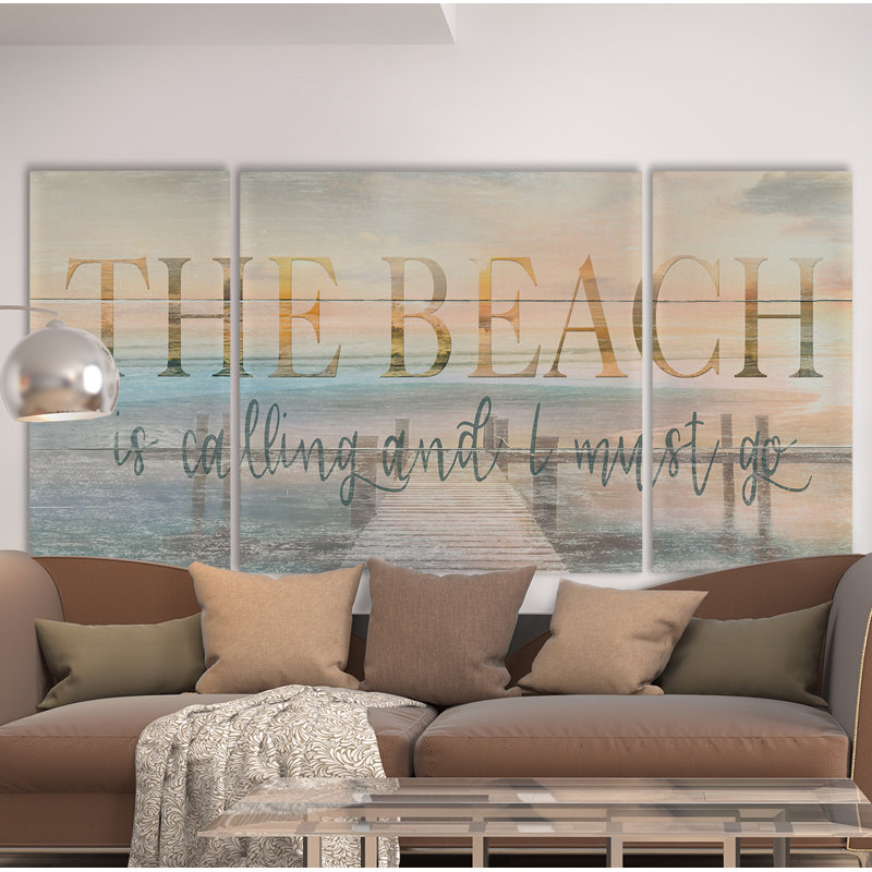 Life’s a beach with this fun, coastal-inspired graphic art piece. It’s made in the USA and hand-wrapped on giclee canvas in a variety of sizes to choose from. The three pieces of canvas feature a picture of a dock overlooking the ocean in faded hues of pink, white, and blue. It also says “The beach is calling and I must go” all across the canvas for even more beachy vibes in your space. Best of all, this canvas art piece comes with all the hooks you need for fuss-free wall mounting.