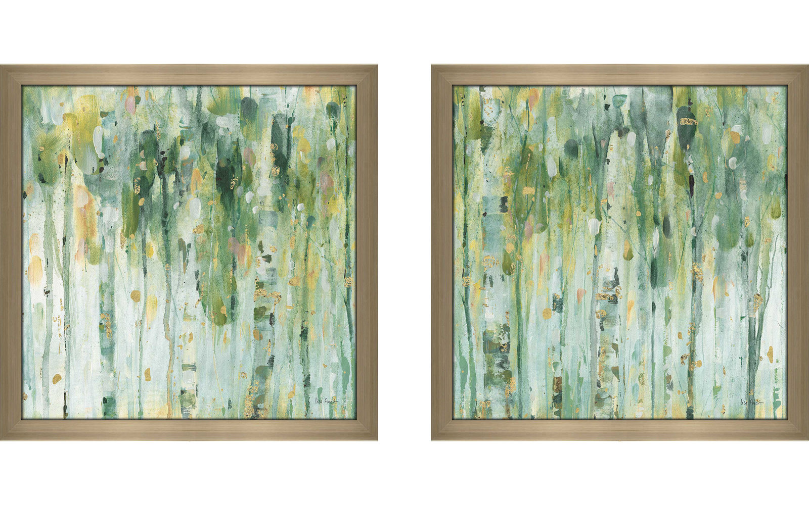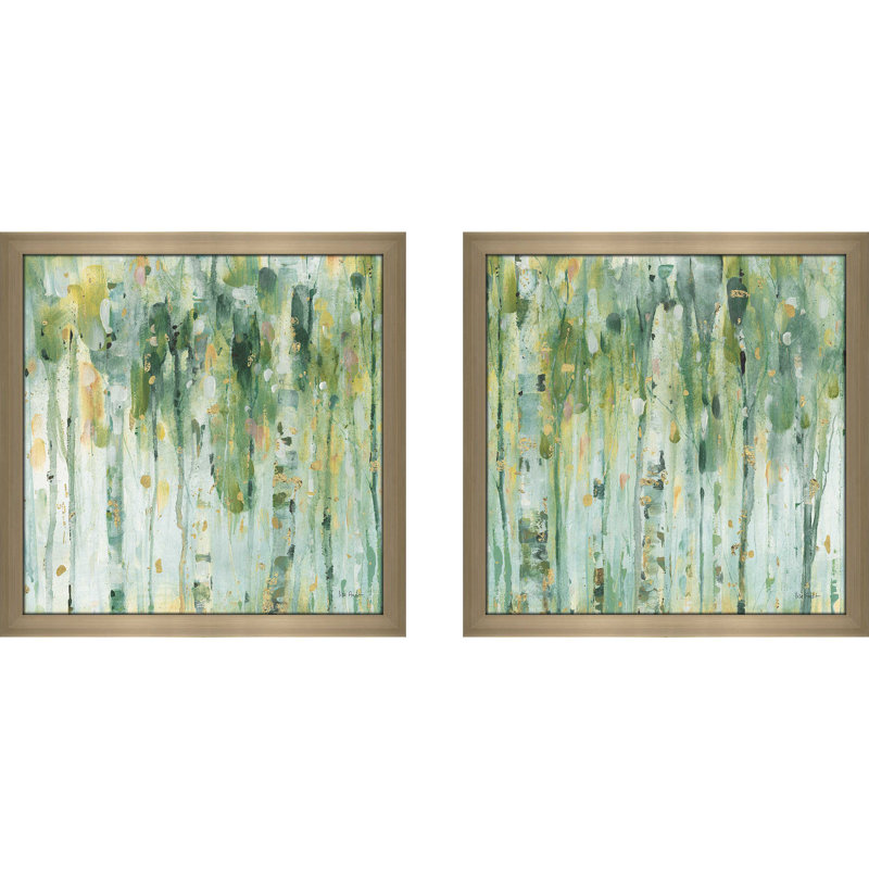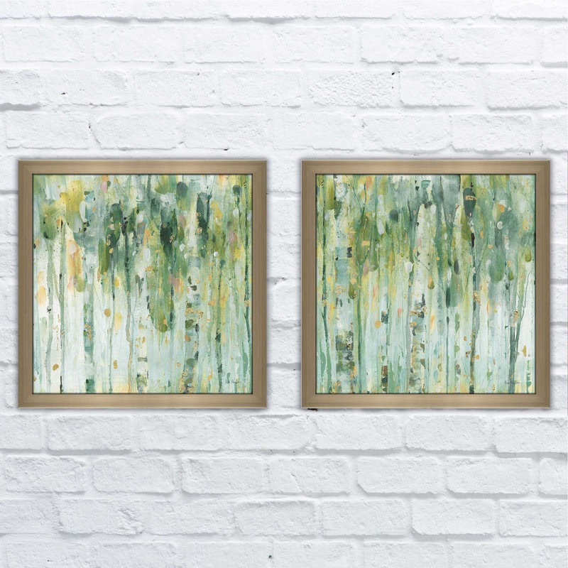 Blank wall bumming you out? Bring it back to life with natural inspiration from this two-piece painting print set. Showcasing abstract forest scenes with defined trees when you look closely, they offer green hues with pops of gold for just a glint of glamour. Made in North America, this decorative duo is printed on paper and highlighted by square polystyrene frames with protective glass covers.