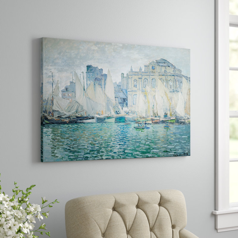 This giclee print is a stunning reproduction of Claude Monet’s famous masterpiece “The Museum at Le Havre.” It features stunning European architecture in the background, while sailboats and calm sea waves create an unforgettable view for any space. Muted blue, gray, and off-white tones nod to the famous painter’s iconic palette and style. This oil painting is printed on a horizontal, rectangular canvas that’s wrapped around wood for a gallery-worthy display. Mounting hardware is also included for hassle-free hanging right when it arrives.