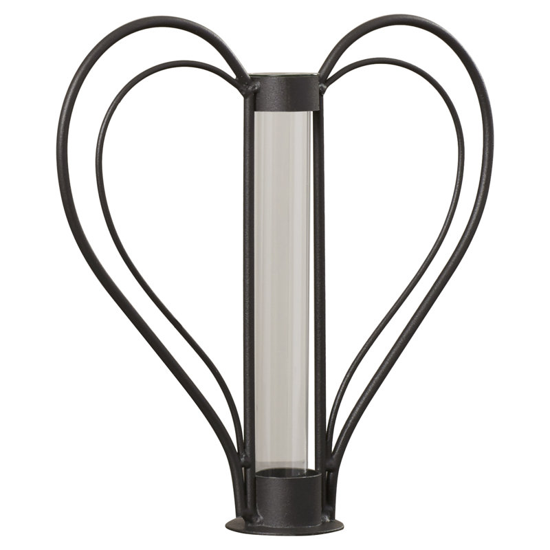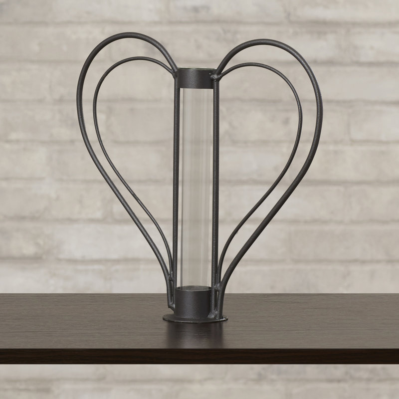 Thornaby Heart Shaped Iron and Glass Cylinder Table Vase