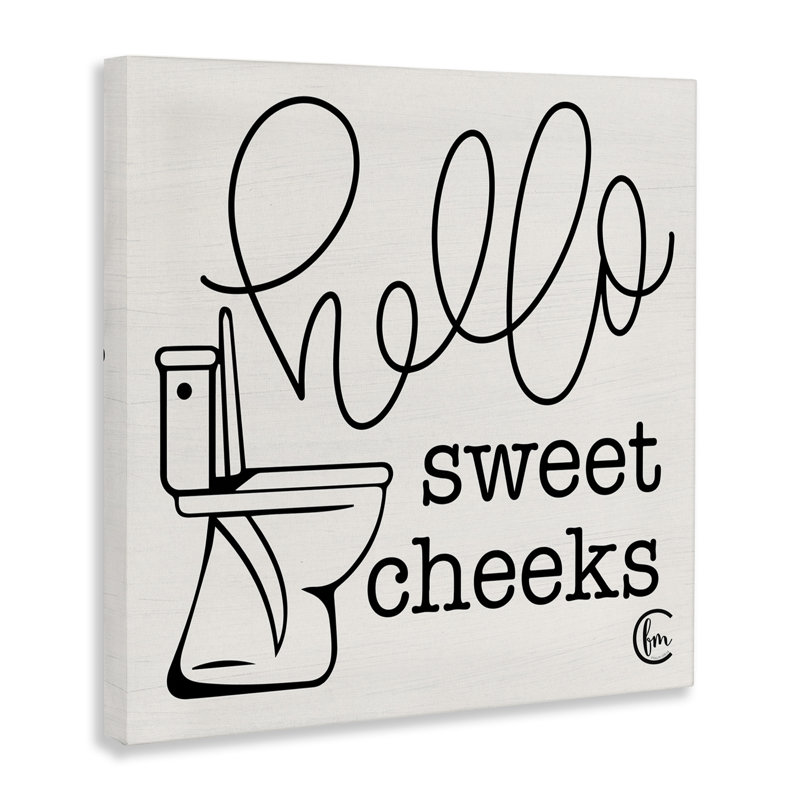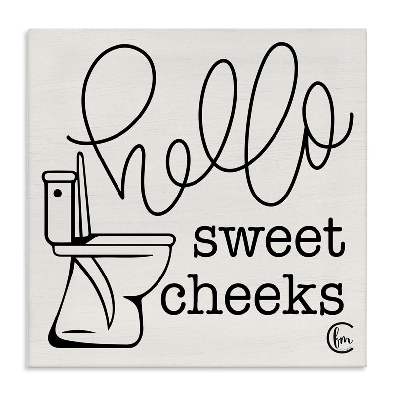 Toilet Hello Sweet Cheeks Black and White Curly Script Cursive by Penny Lane Publishing – Textual Art on Canvas