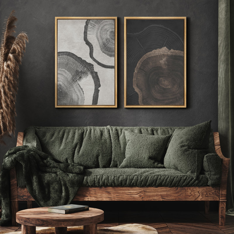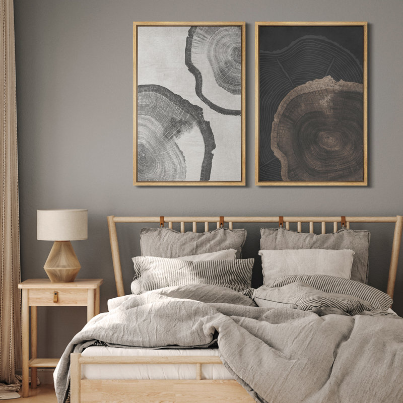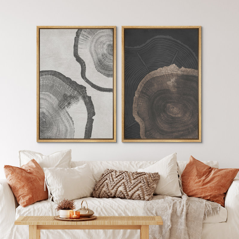 Tree Ring ” Wood Tree Rings Abstract Minimalist Modern Wall Art Neutral Boho Decor ” 2 – Pieces