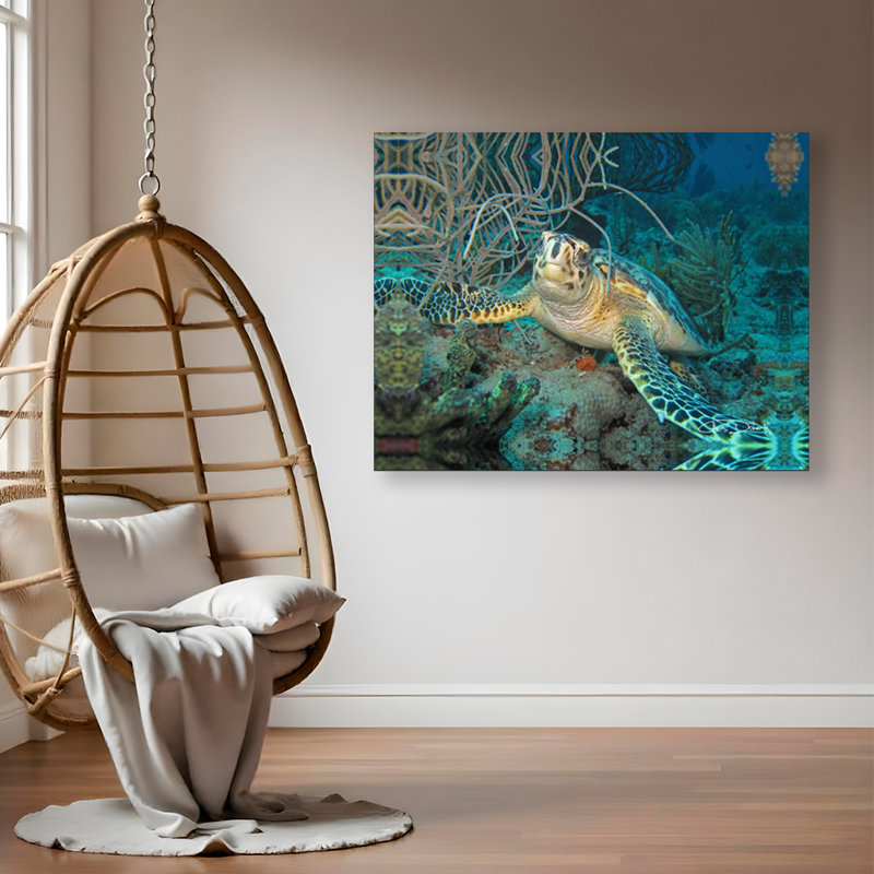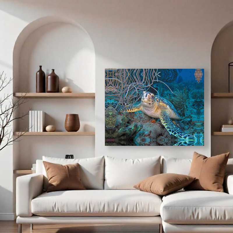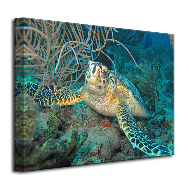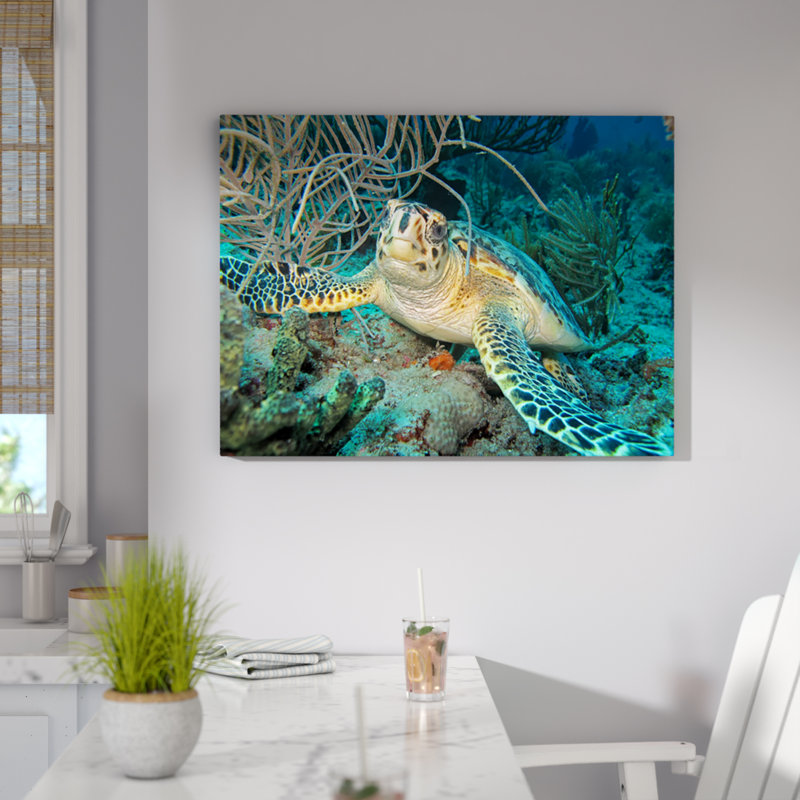 Add a little extra nature and shoreline opulence to your home decor with this coastal turquoise-toned wildlife photography canvas art featuring a sea turtle on the coral reef-decorated ocean floor. Th…. Read More.
