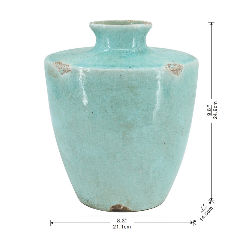 • Rustic vintage style aqua blue crackle glaze terra cotta ceramic vase.