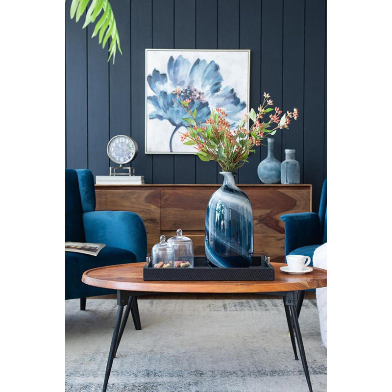 With a swirl of white the Mayron vases bring motion and energy to your dcor. Artisan made with deep blue tones and the contrasting white each piece is slightly unique and make a great addition to any room of your home.