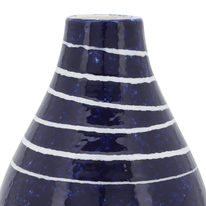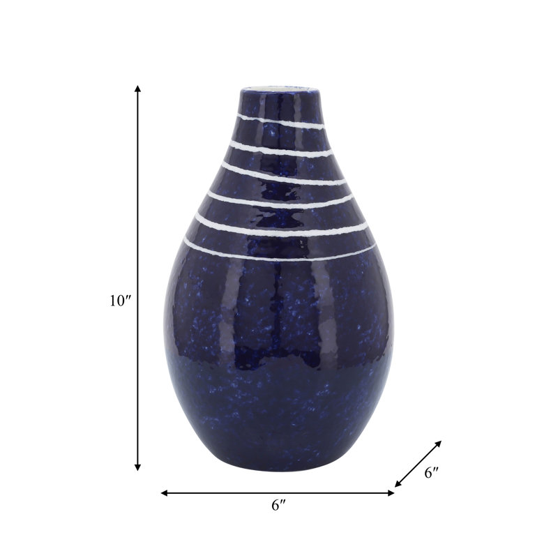 Add a modern touch to your home decor with this stylish blue ceramic vase, designed to elevate any space with its sleek contour and glossy finish accented by crisp white lines. Measuring 6x6x10 inches, this decorative vase is made from high-quality stoneware, ensuring durability and long-lasting charm for your living room, bedroom, entryway, or office decor. Its rich blue glaze and contemporary design make it the perfect accent for modern and transitional interiors, whether used as a centerpiece or paired with flowers or faux botanicals. Compact yet eye-catching, this ceramic vase fits seamlessly into a variety of spaces and styles, offering a versatile solution for your decorating needs. Whether you are refreshing your home or looking for a unique decorative gift, this ceramic vase makes a smart and stylish choice. Upgrade your home with a beautiful modern accent by adding this elegant blue vase to your cart today.