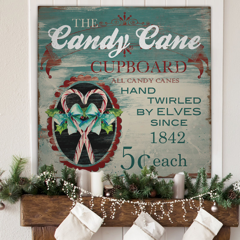 ‘Vintage ad: candy canes’, a hand-wrapped and custom-printed premium giclee canvas just right for the holidays.