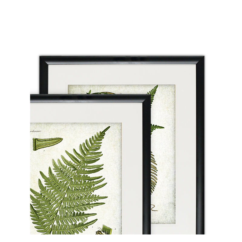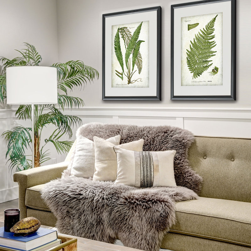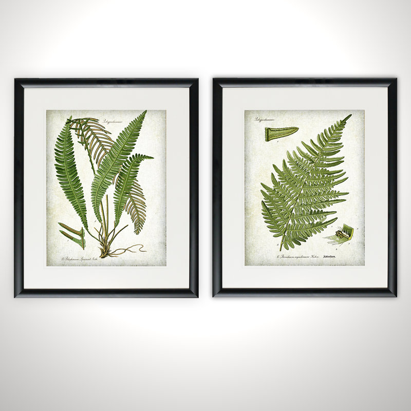 Bring vintage-inspired botanical style to your living room, bedroom, or home office with this 2-piece set of framed prints. Entitled “Vintage Botanical Sketch VII,” this set of two acrylic painting reproductions is made in the USA, printed on paper and matted and framed behind acrylic glass. Each rectangular piece features a realistic depiction of fern leaves, complete with their Latin nomenclature written in black script. These pieces come with their wall mounting hardware, so they’re easy to hang vertically over your sofa, bed, or desk.