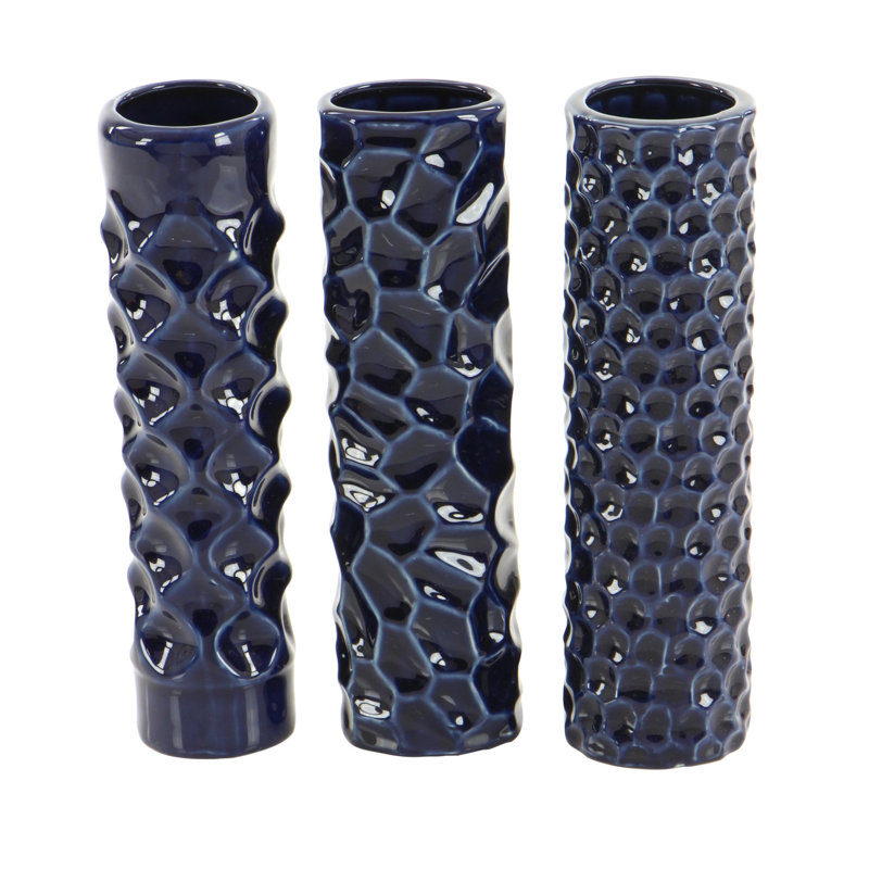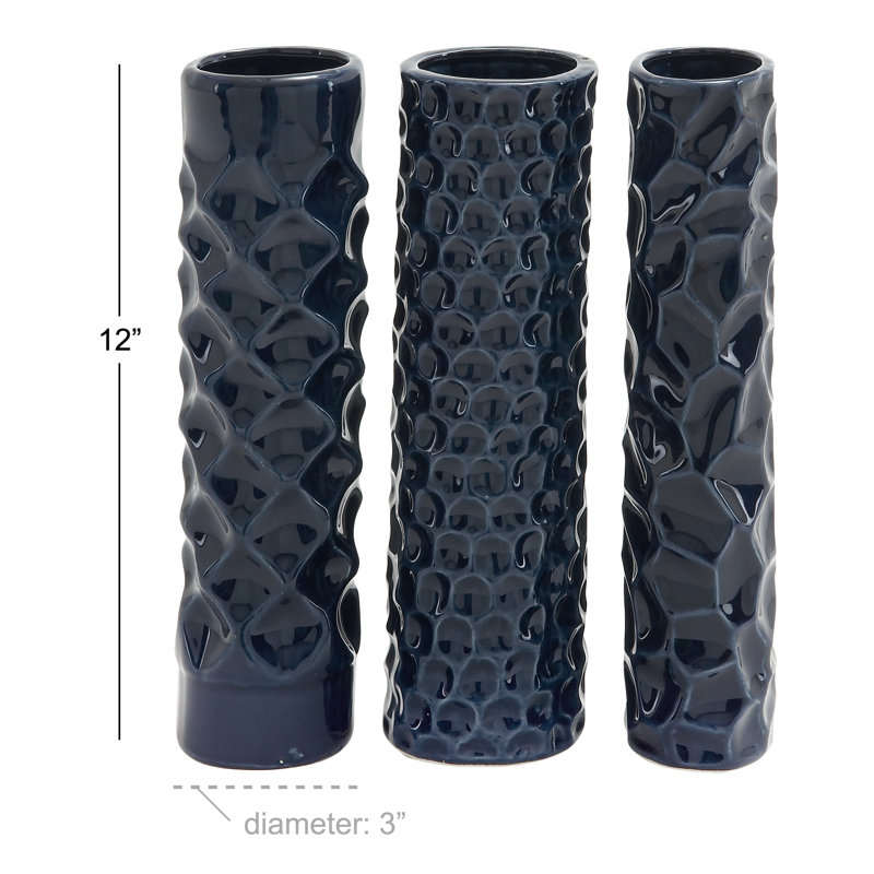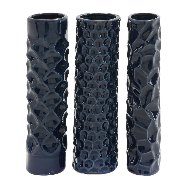 Vogelsang Ceramic Decorative Dark Blue Vase with Varying Patterns Set