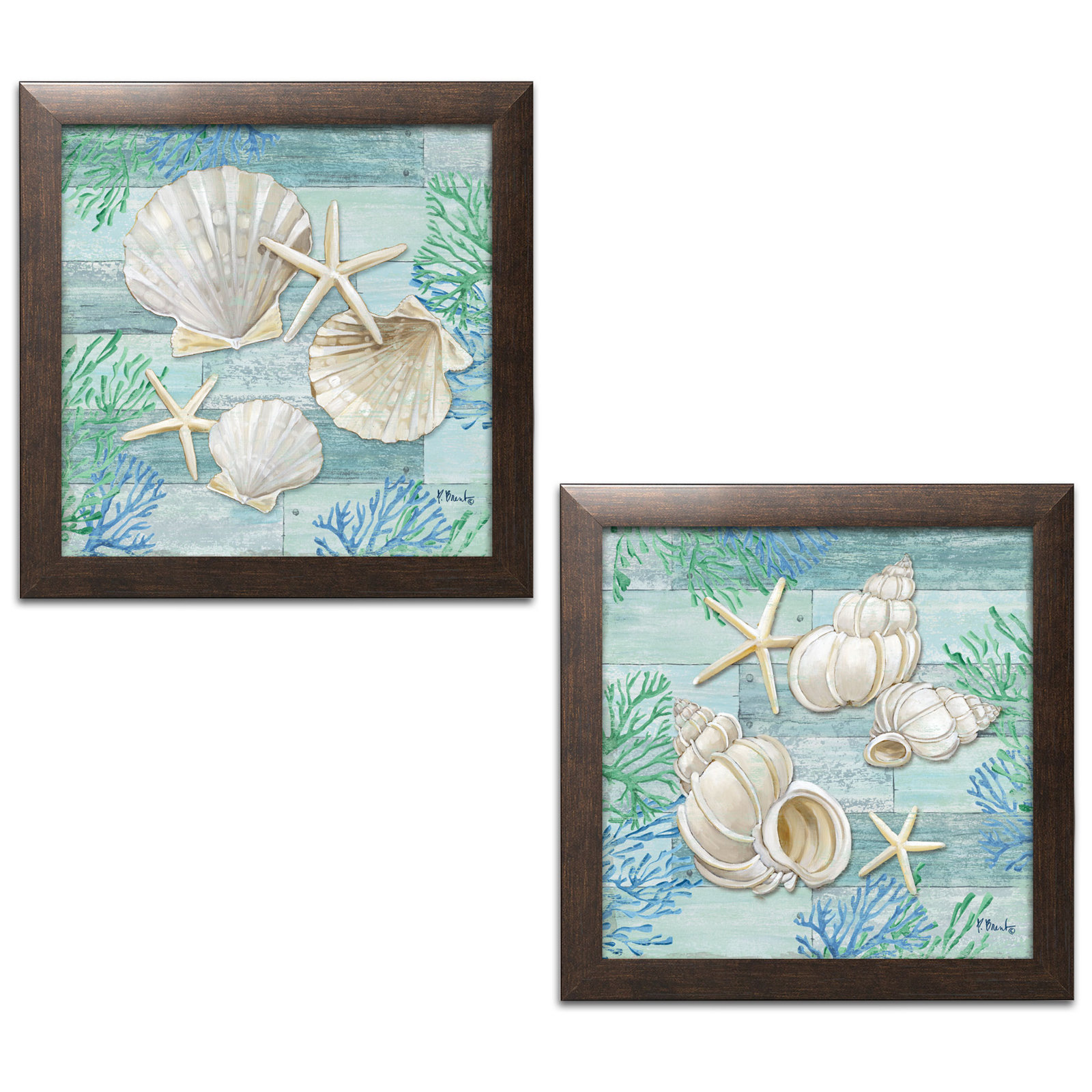 ” Watercolor Beach Décor Shell & Starfish ” 2 – Pieces