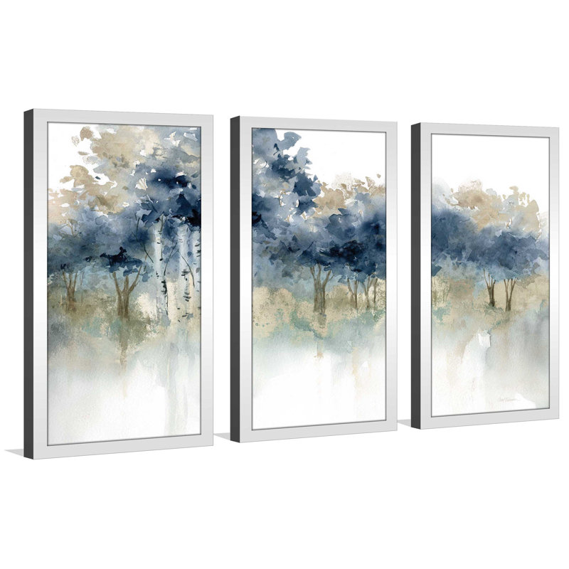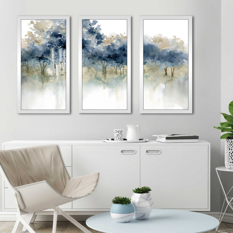 Infuse your living space with a serene, relaxed vibe with this 3-piece watercolor print set. Reproduced from an original work by artist Carol Robinson, “Waters Edge I” is a triptych that depicts three similar views of trees by a water’s edge in cool hues of blue, gray, and white. We love the impressionistic style of this print set that gives it a dreamy, contemplative feel. It is available in a range of sizes, so you’re sure to find the one that best fits your space and comes framed and ready to hang with all included hardware.