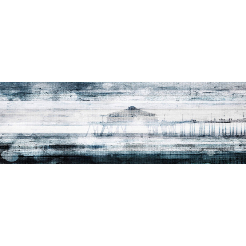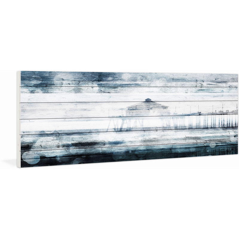 Classic and coastal elements collide in this painting print, showcasing an abstract image of an ocean pier in cool blue and gray hues for a subdued splash of color. Proudly made in the USA, this piece is printed on natural pinewood with a plank-like background and visible knots for a touch of rustic character. Wall-mounting hardware is included, so it’s ready to hang up as soon as it reaches your door.