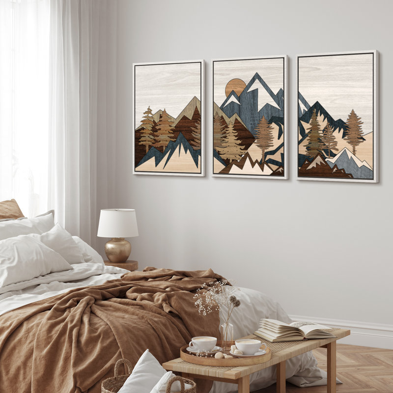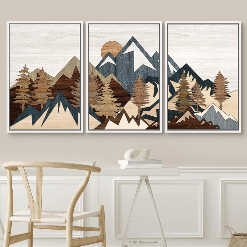 Western Wood Effect Landscape Country Mountain Forest Cabin Farmhouse Decor Framed Canvas 3 Pieces Print Wall Art