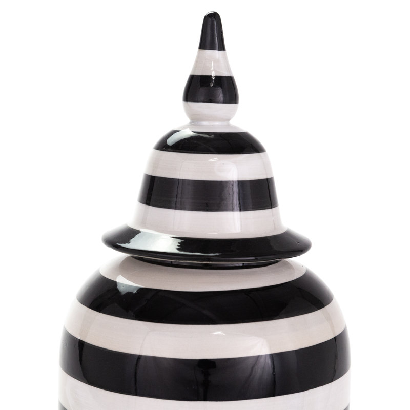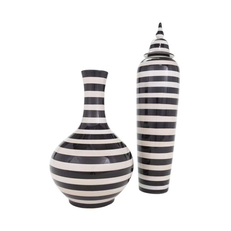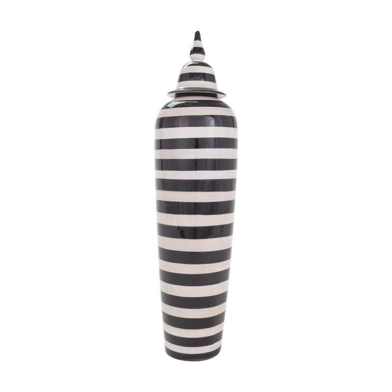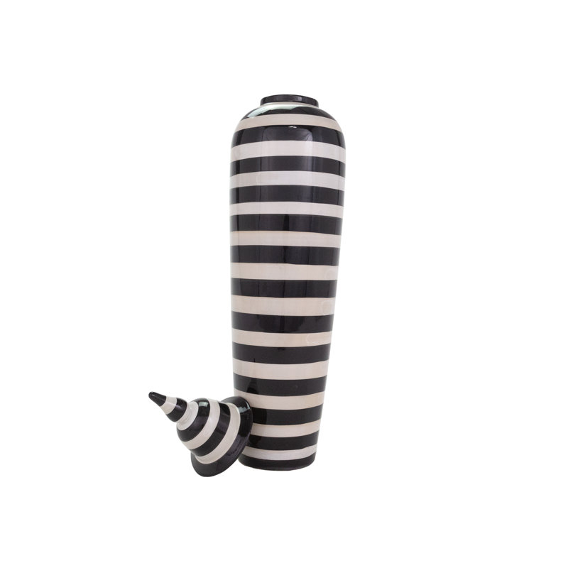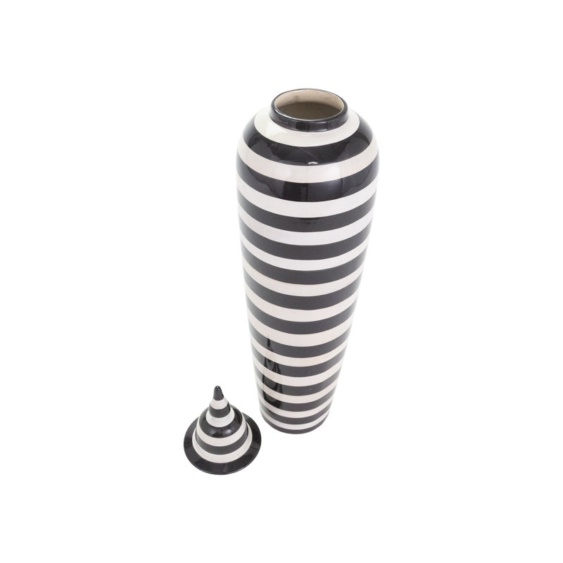 Bring a sleek, artistic element to your home with this uniquely designed ceramic vase. The modern striped pattern complements a range of decors. More than just a container, this piece serves as a stri…. Read More.