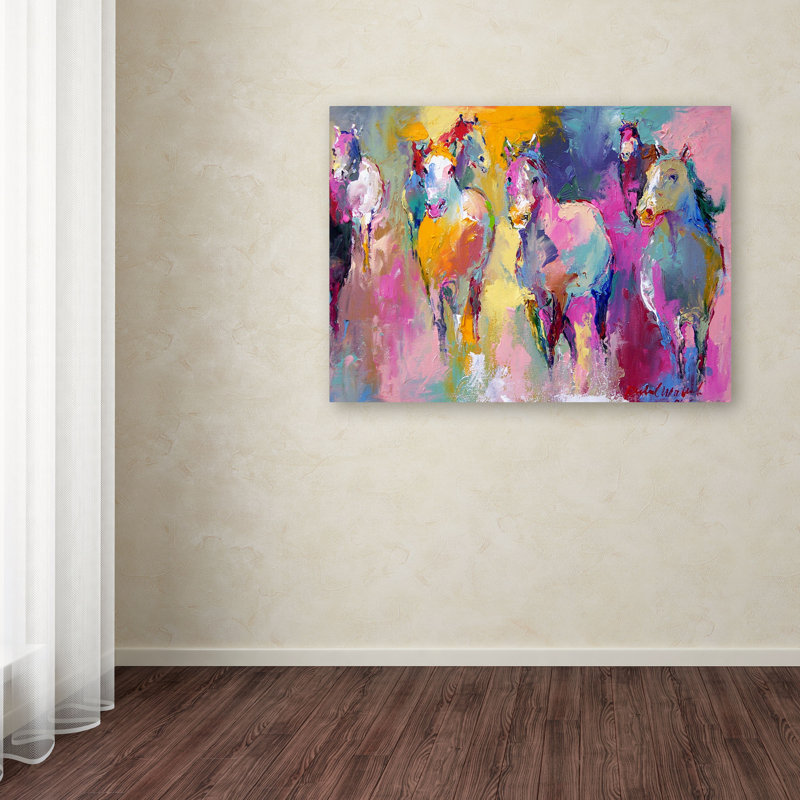 This ready to hang, gallery-wrapped art piece features horses.