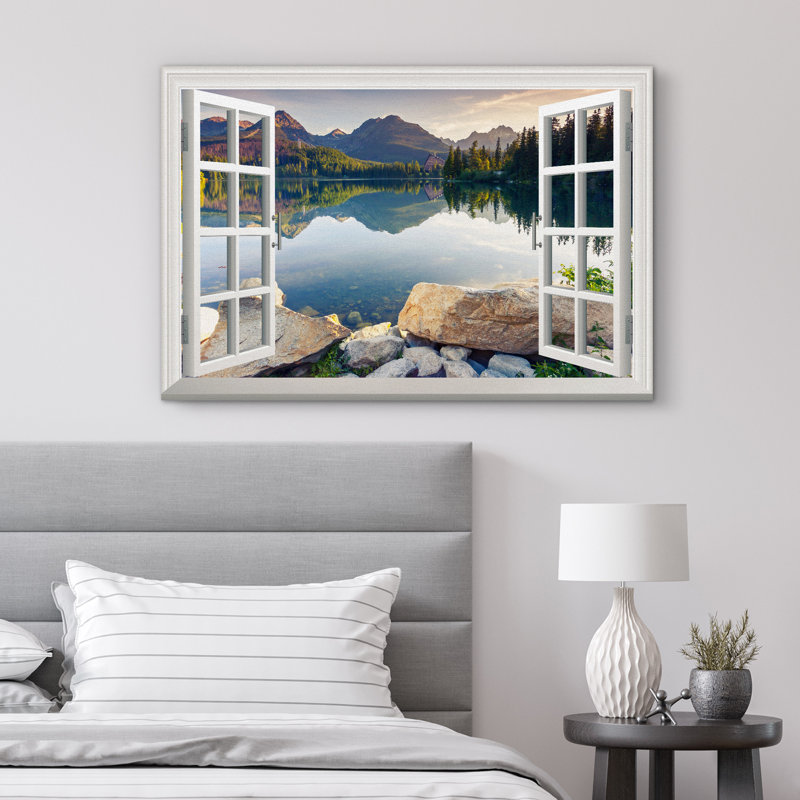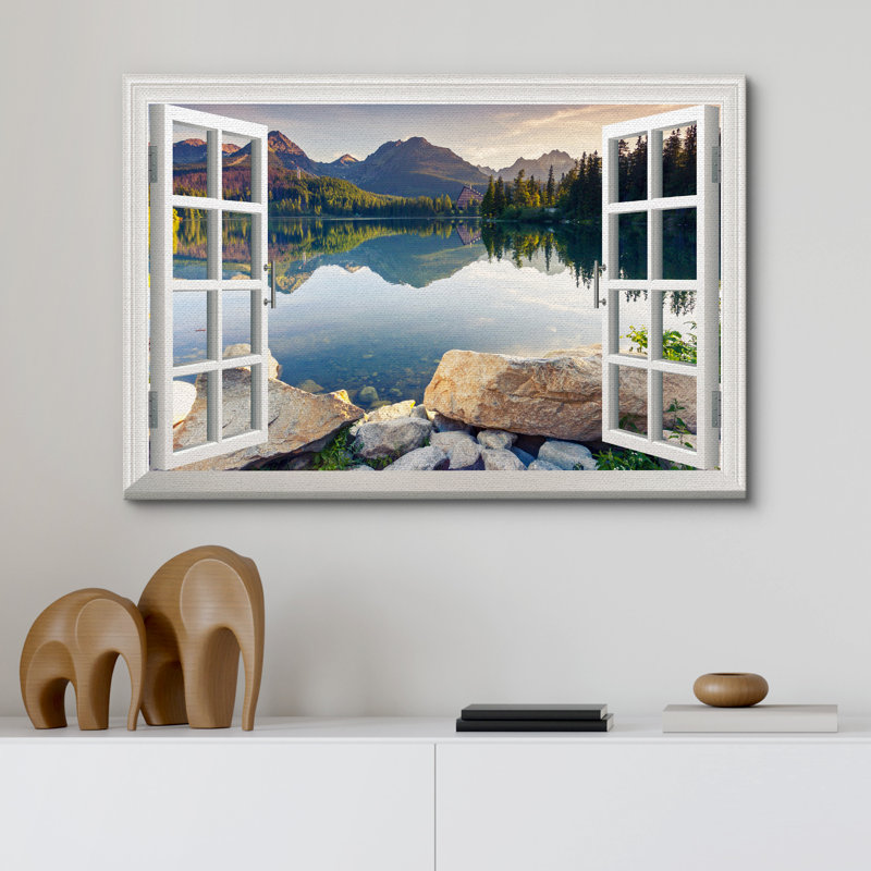 Window Scenery Green Peaceful Lake Natural Landscape Photography Pictures Canvas Print Wall Art