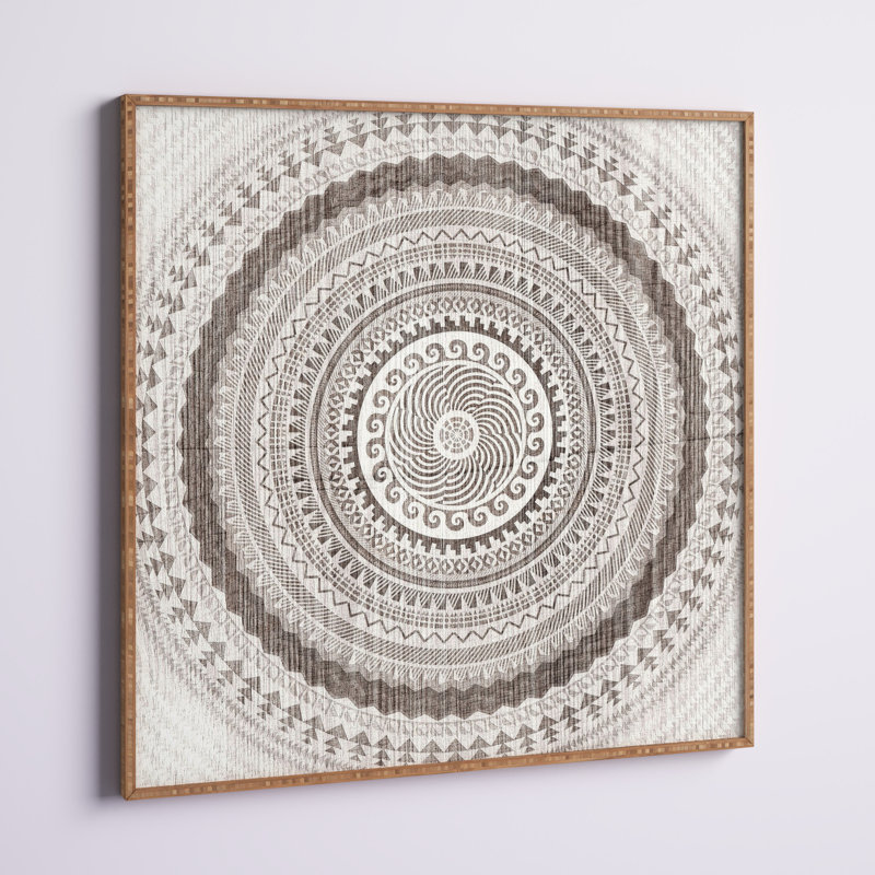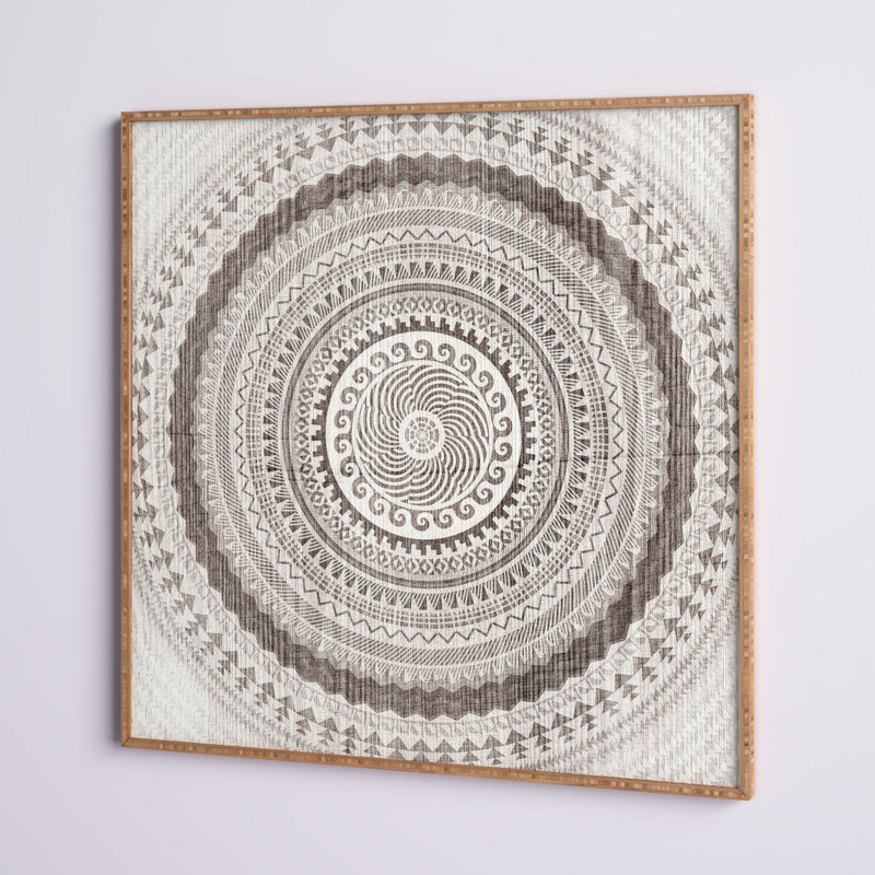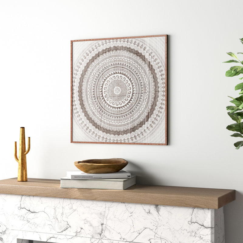 This graphic art print adds texture and a breezy boho style to your walls. It showcases a layered circular design in a neutral gray hue with a detailed medallion pattern. Made in the USA, this artwork…. Read More.